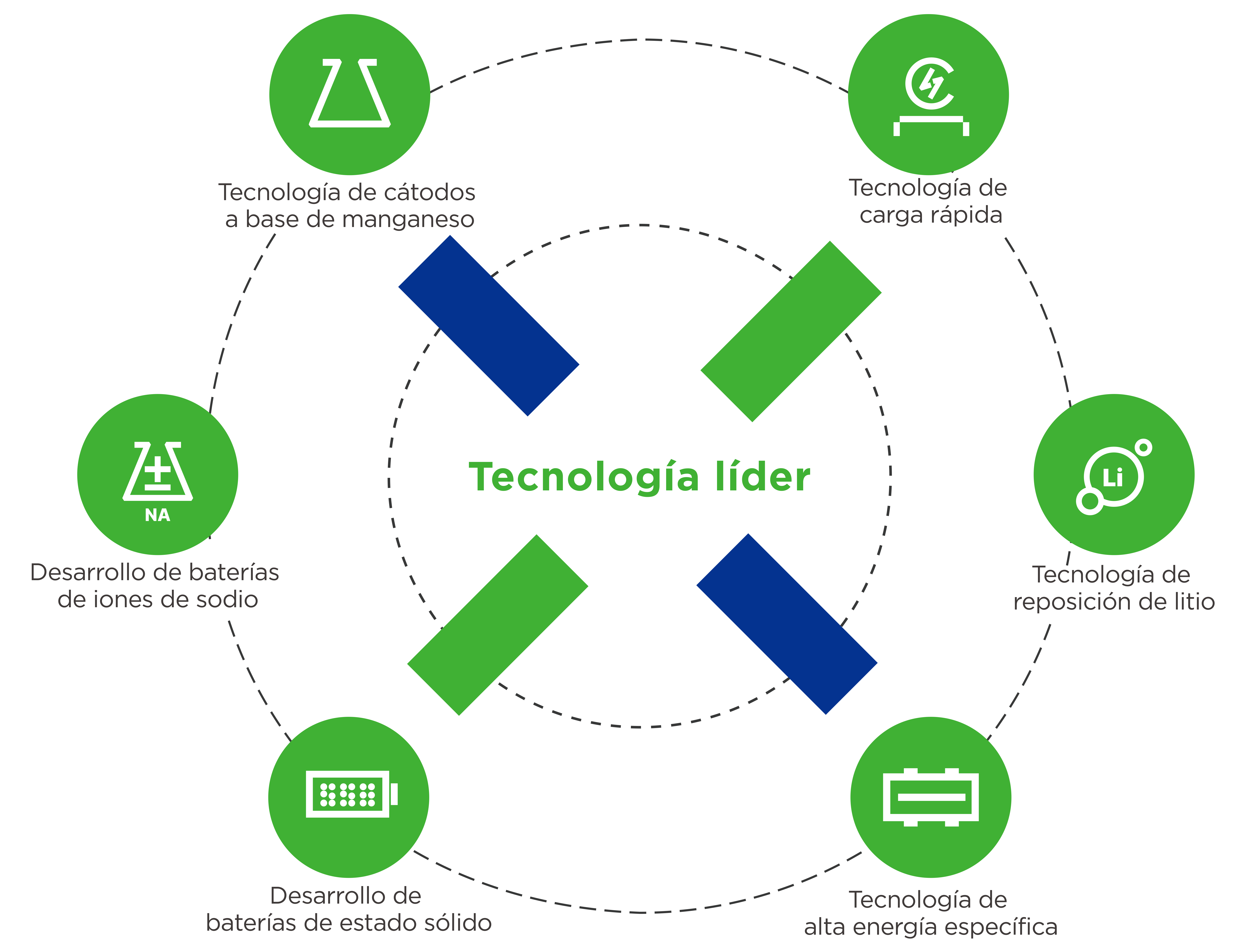 Centrándonos en la investigación innovadora sobre sistemas de materiales electroquímicos, utilizando métodos de detección de alto rendimiento y a través de investigaciones en profundidad sobre la relación estructura y efecto de los materiales, podemos decodificar y modificar materiales, desarrollando de manera eficiente materiales para baterías con un mejor rendimiento, menores costos y mayor confiabilidad.